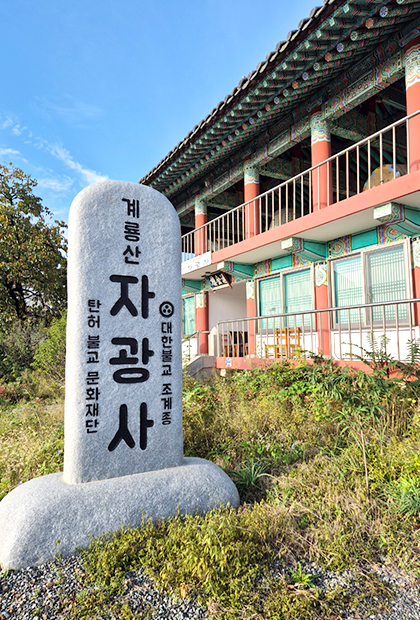 우리 자광사는 대전시 유성구 학하동 649번지에 소재한 탄허문화재단 소속의 조계종 사찰로서 1969년 12월 20일 탄허 대종사께서 인재양성을 목표로 창건하셨습니다.